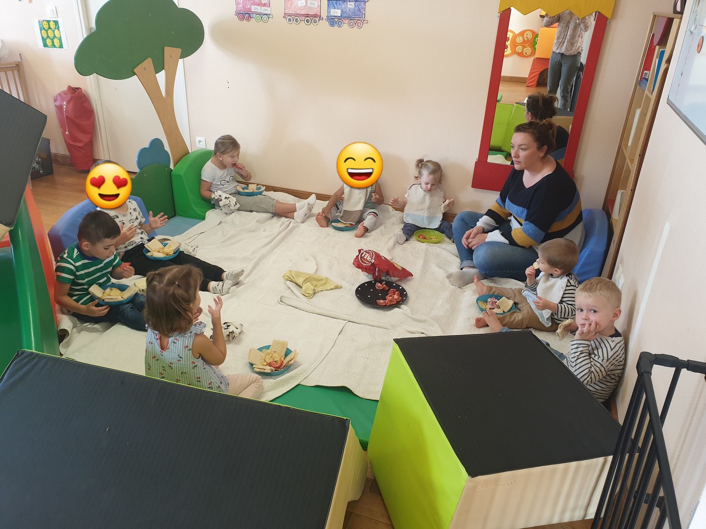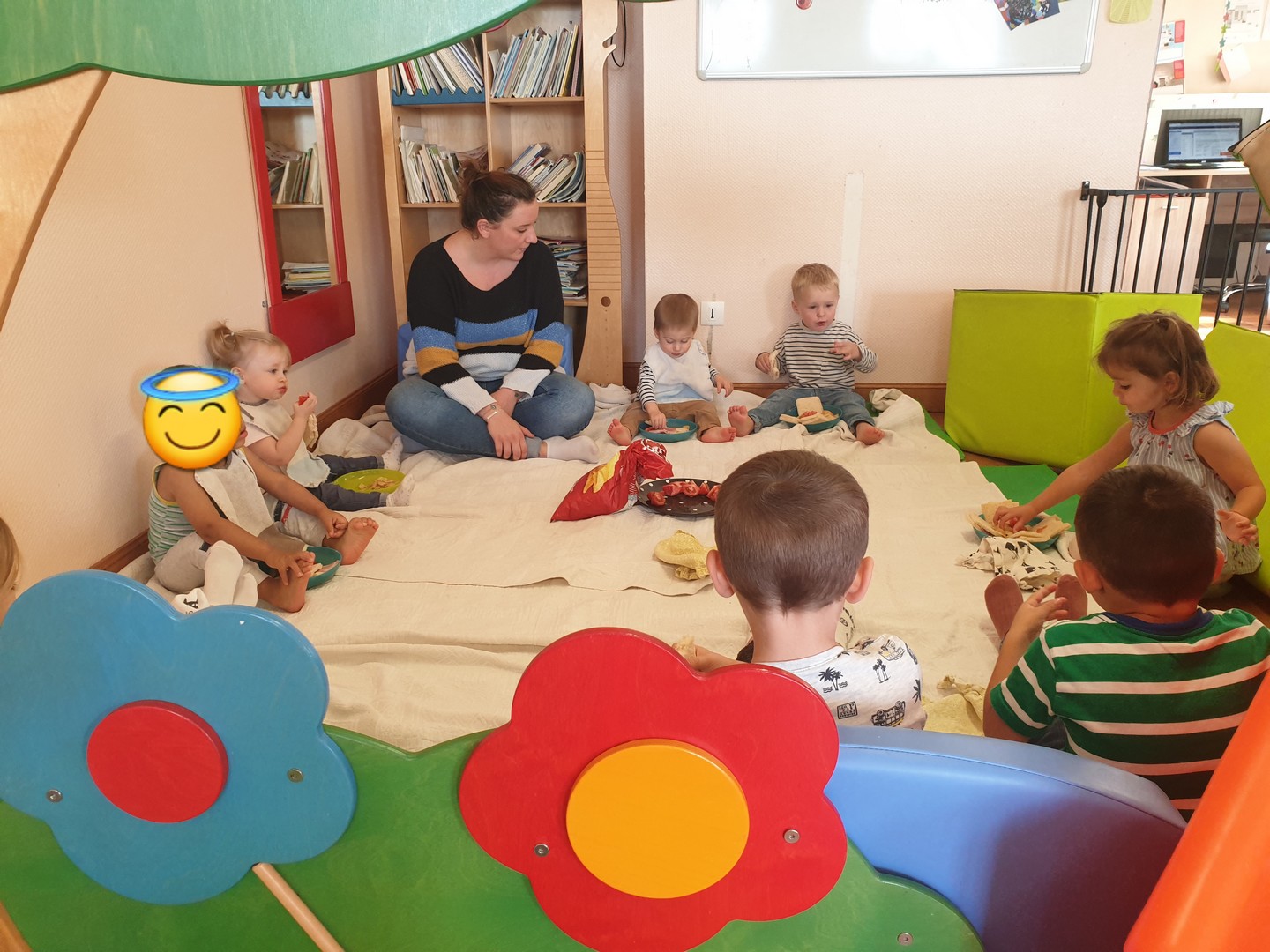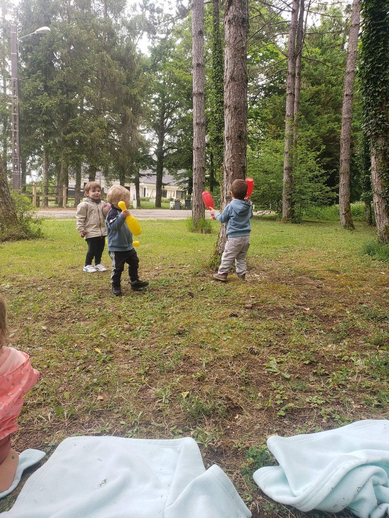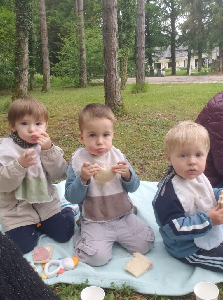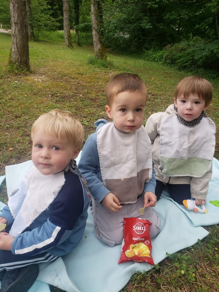 Nous nous sommes assis dans l'herbe à l'ombre, sur des couvertures dans un endroit calme et ombragé afin de partager tous ensemble un bon moment de détente avec nos petits loulous.