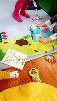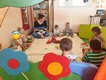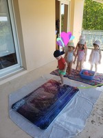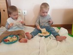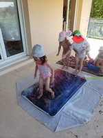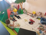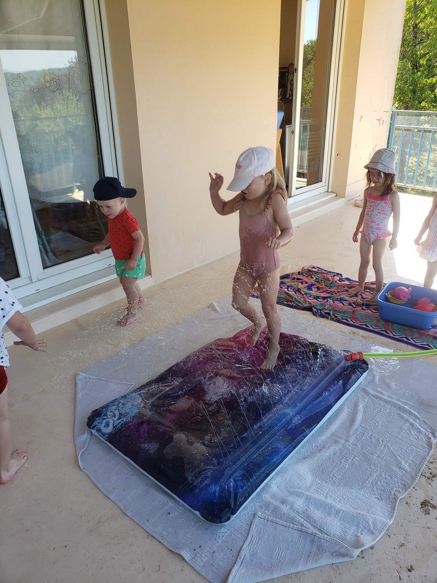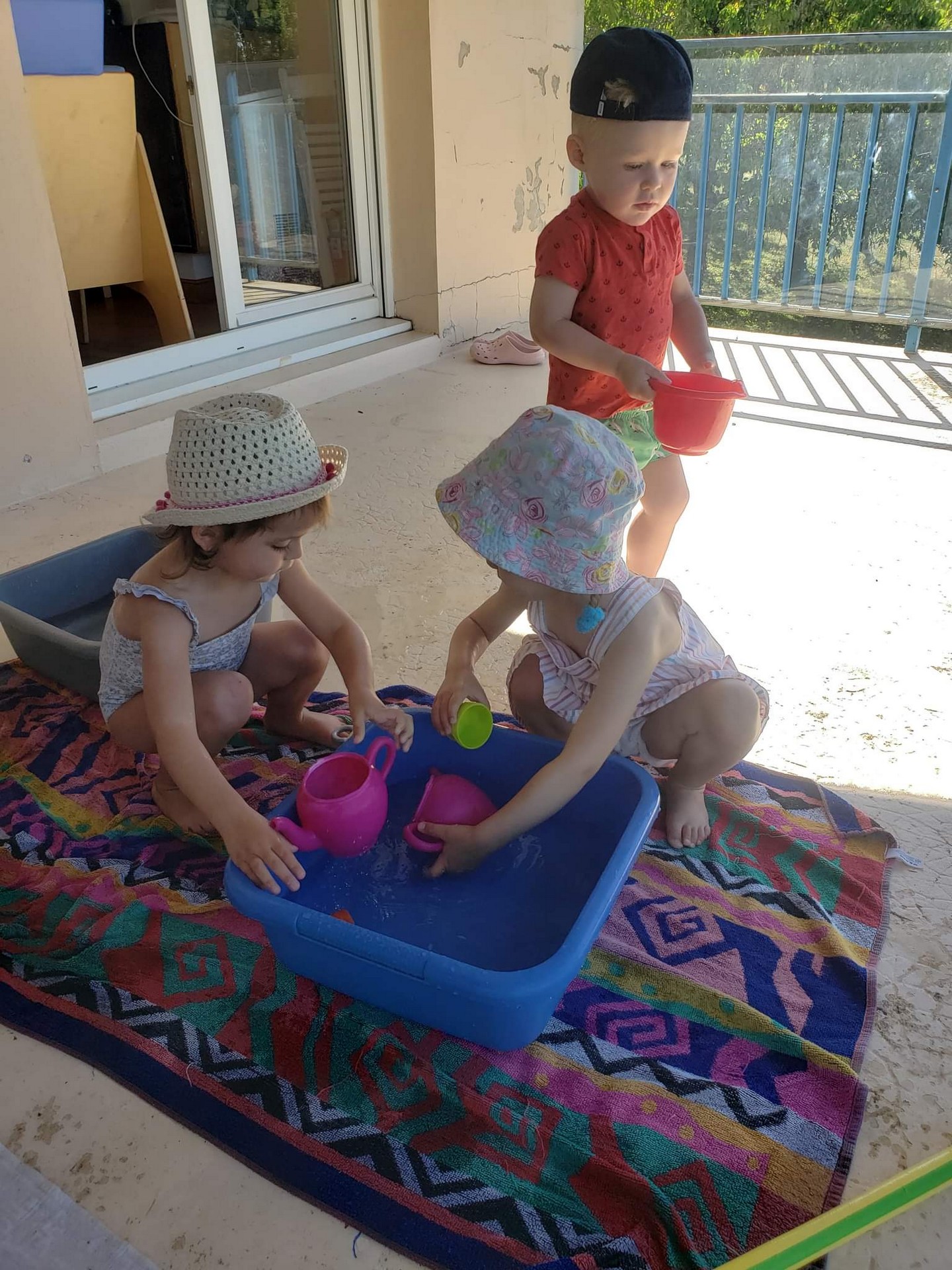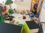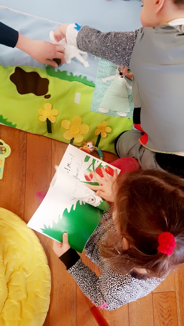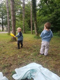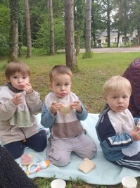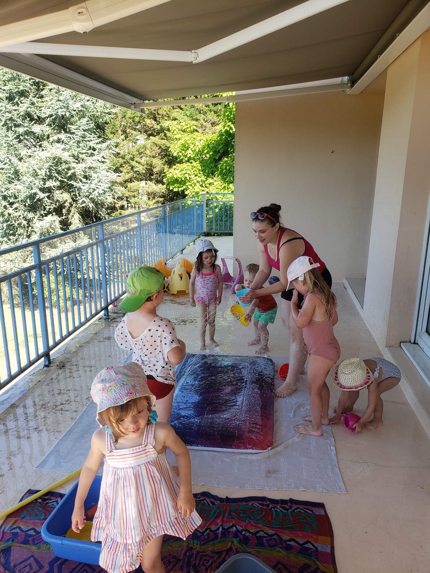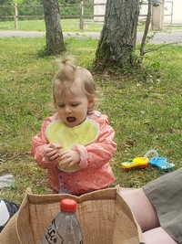 Nous nous sommes assis dans l'herbe à l'ombre, sur des couvertures dans un endroit calme et ombragé afin de partager tous ensemble un bon moment de détente avec nos petits loulous.