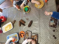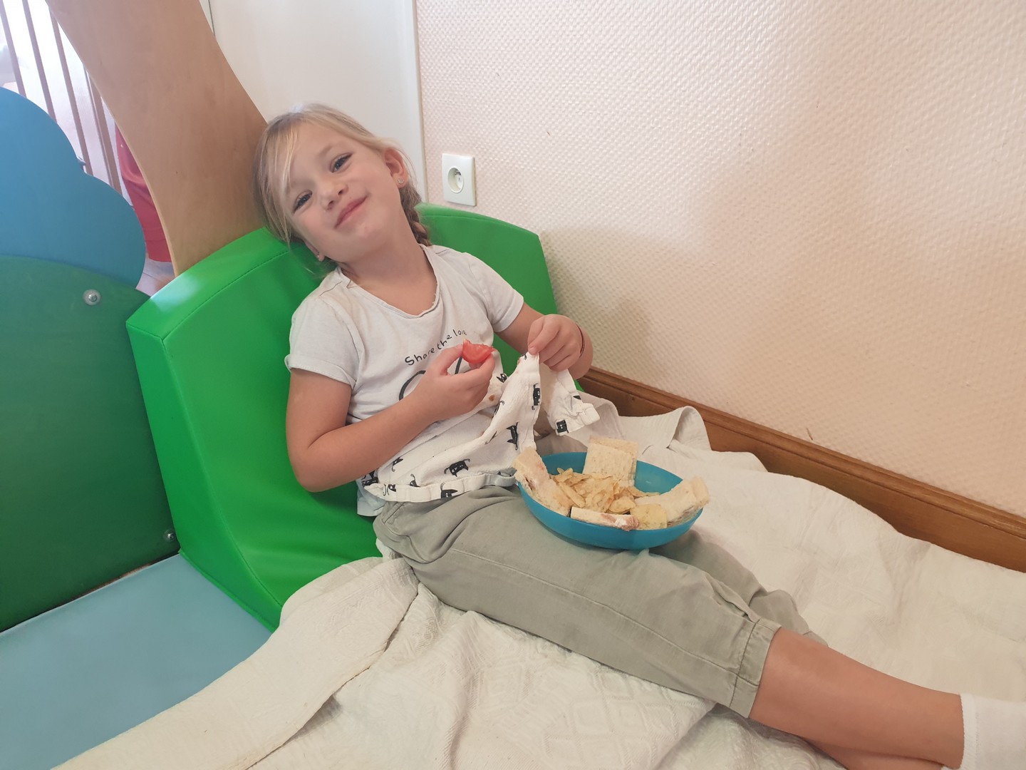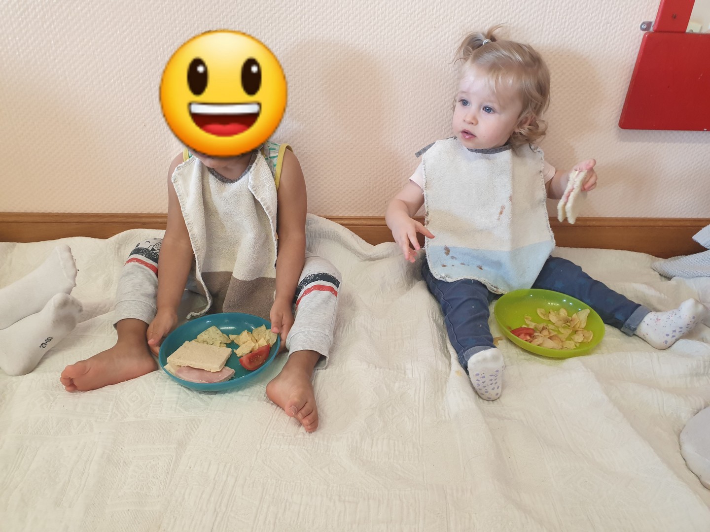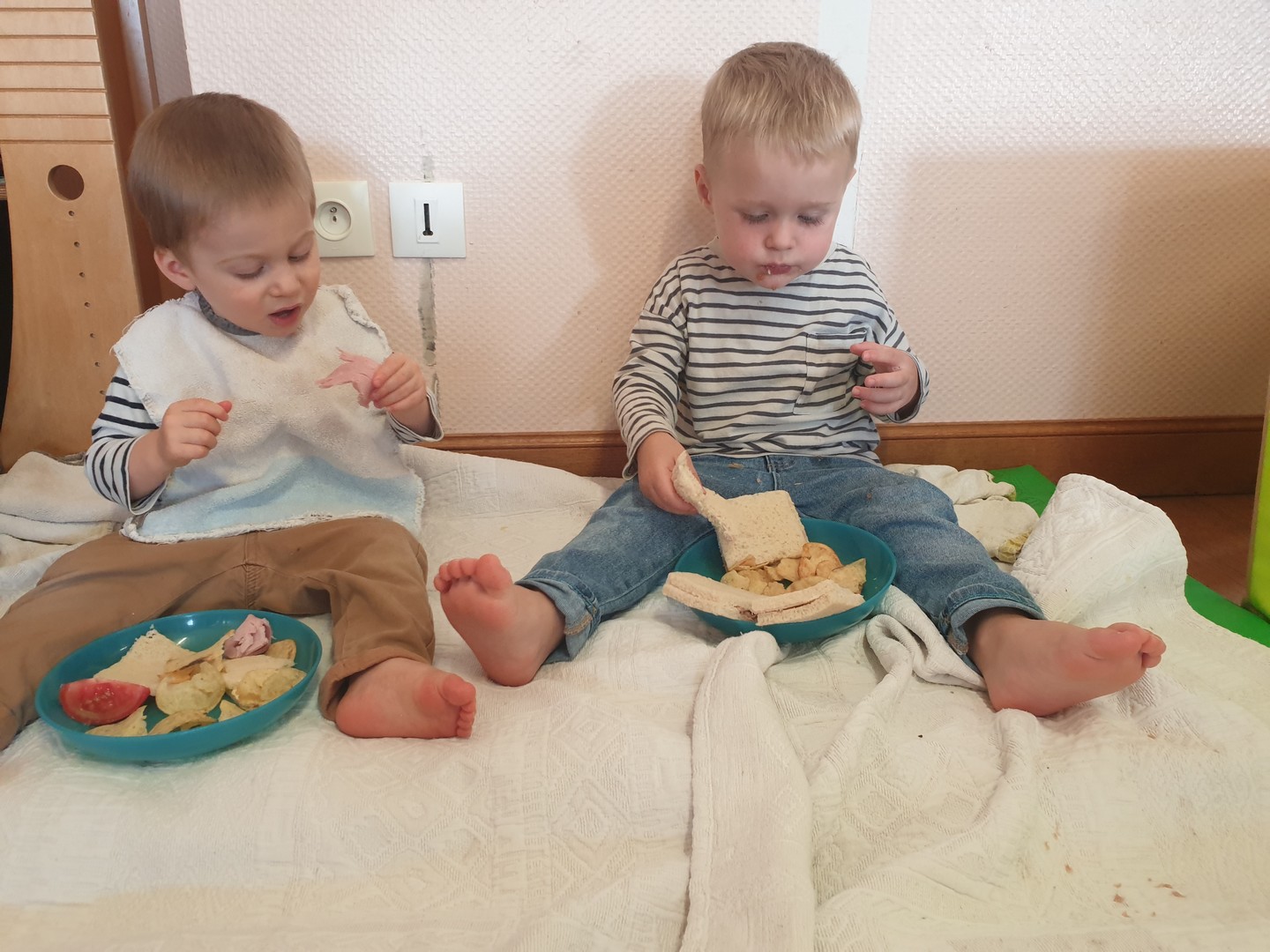 Pour le plus petits nous avons chauffé les plats moulinés/morceaux avant de partir. Ils sont restés au chaud dans des sacs isothermes.