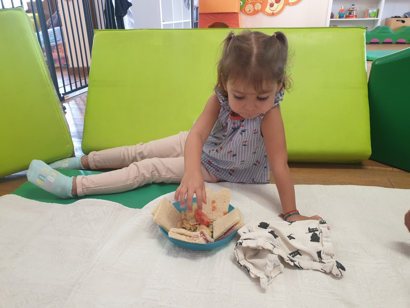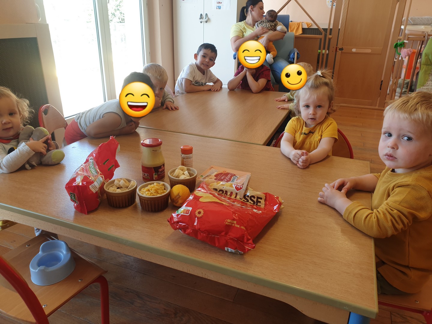 Pour les plus grands le repas était composé de tomate à croquer, sandwich jambon / thon fromage blanc, (chips), fromage et fruit.