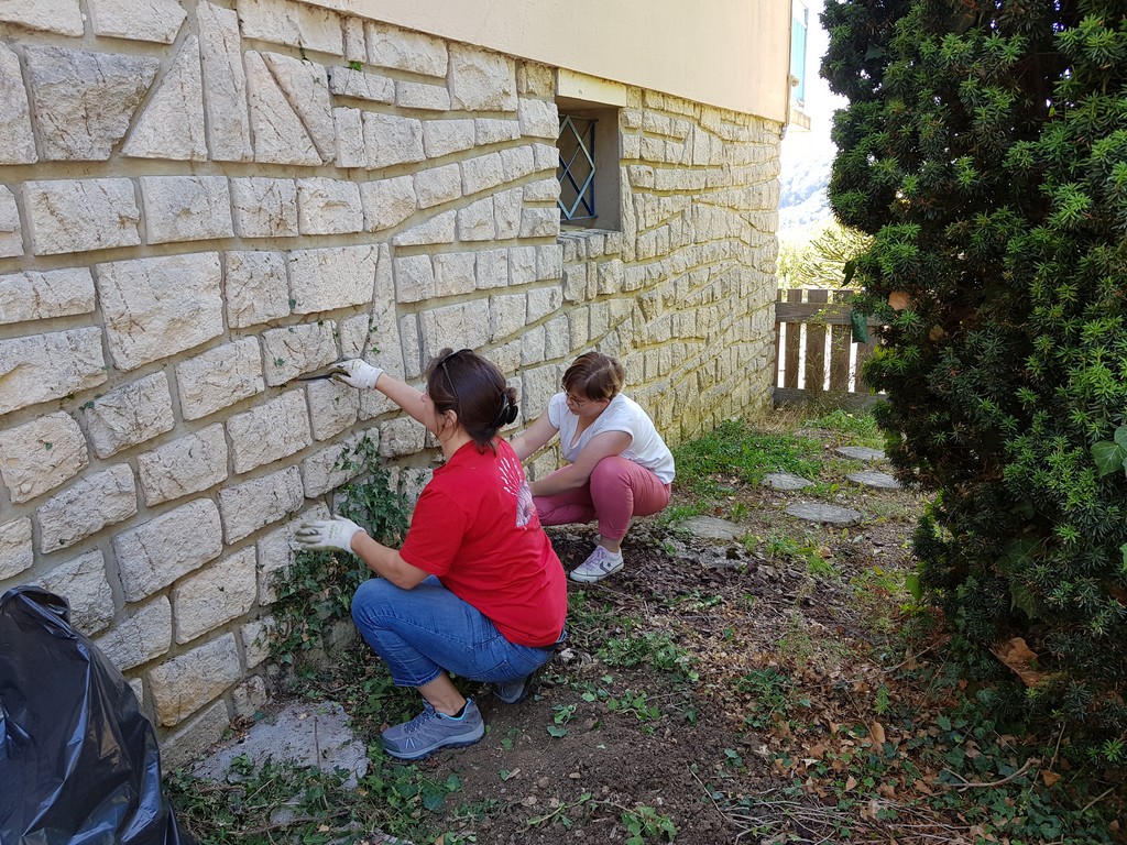 - Nettoyage de la façade (Lierre) et désherbage des escaliers du jardin